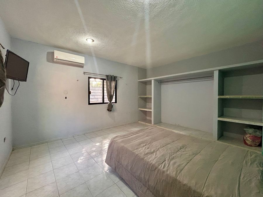 1 recamara con cama, clima y closet de cemento abierto